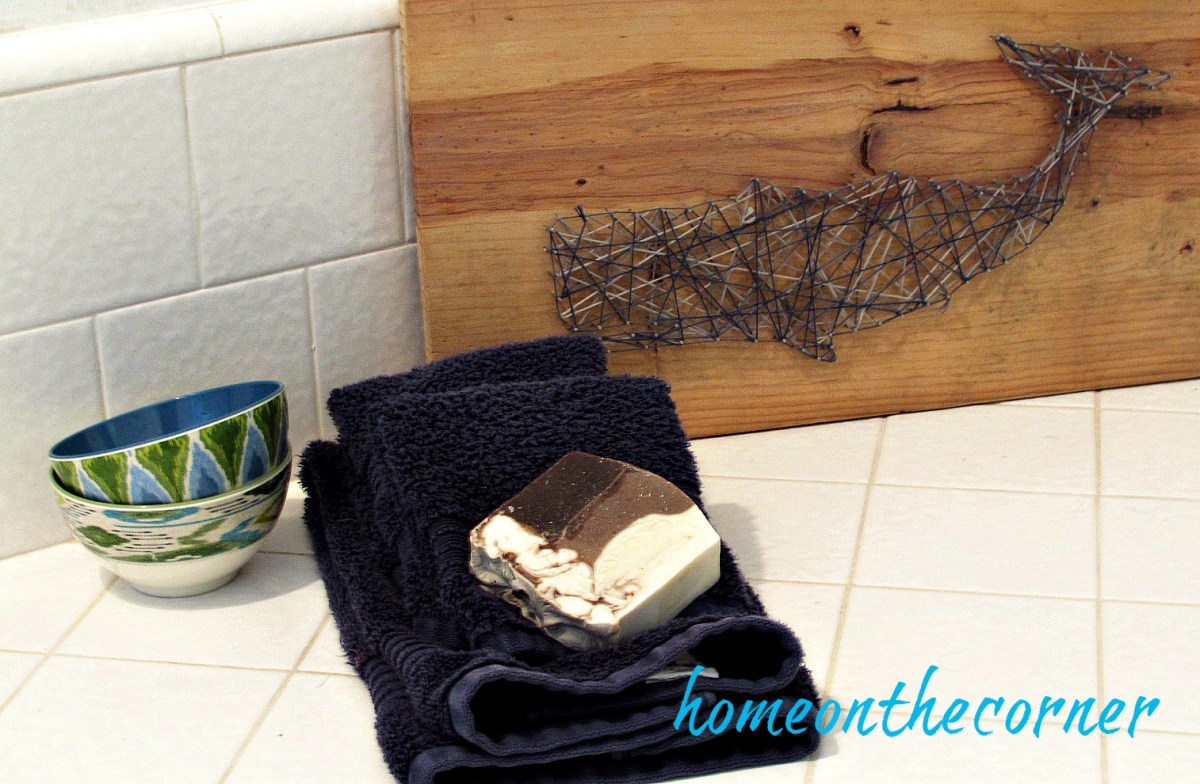 hallway bathroom makeover whale string art blue and turquoise Previous Next Published March 29, 2017 at 1514 × 990 in Hallway Bathroom Makeover-Rustic Nautical