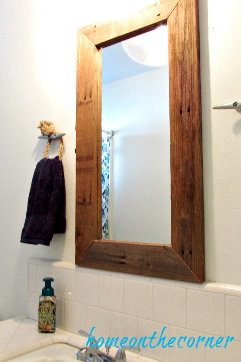 hallway bathroom makeover wood pallet mirror Previous Next Published March 29, 2017 at 998 × 1500 in Hallway Bathroom Makeover-Rustic Nautical