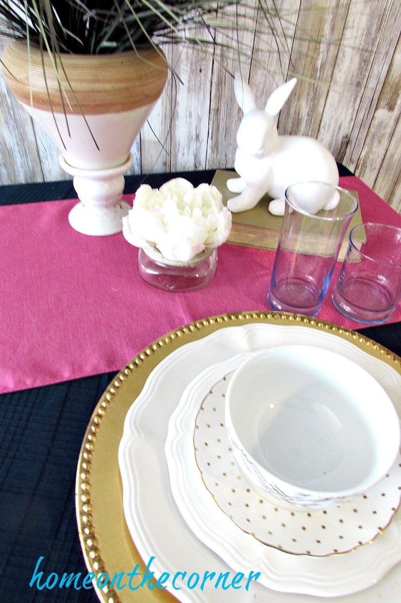tablescapes 2017 gold, and pink with bunny and flower Previous Next Published April 9, 2017 at 1064 × 1600 in A Spring Tablescape Contest