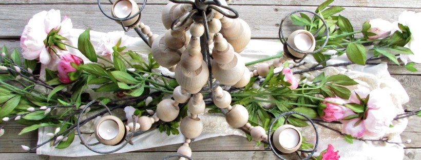 I am still in the process of trying to use the supplies I already own and decided to try to find another project for the wooden beads I have in my stash. The first project I made was Minnie Mouse ornaments. I have been seeing many beaded lamps on the internet, so I thought I would give it a try for myself. I have had this hanging lamp on my patio for many years. I bought it at a yard sale and removed the wiring so it is lit with candles. Several of the glass globes were broken during the move to our ‘new’ house, so I had to figure out something else to dress it up. I wasn’t sure what I was going to do, but than the wooden beads came to mind.