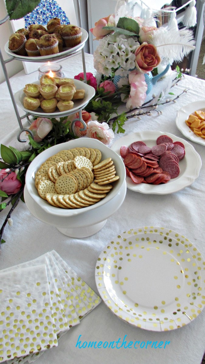 party table meat and crackers Previous Next Published February 28, 2018 at 1330 × 2365 in Pink, Blue and Gold Party Tablescape